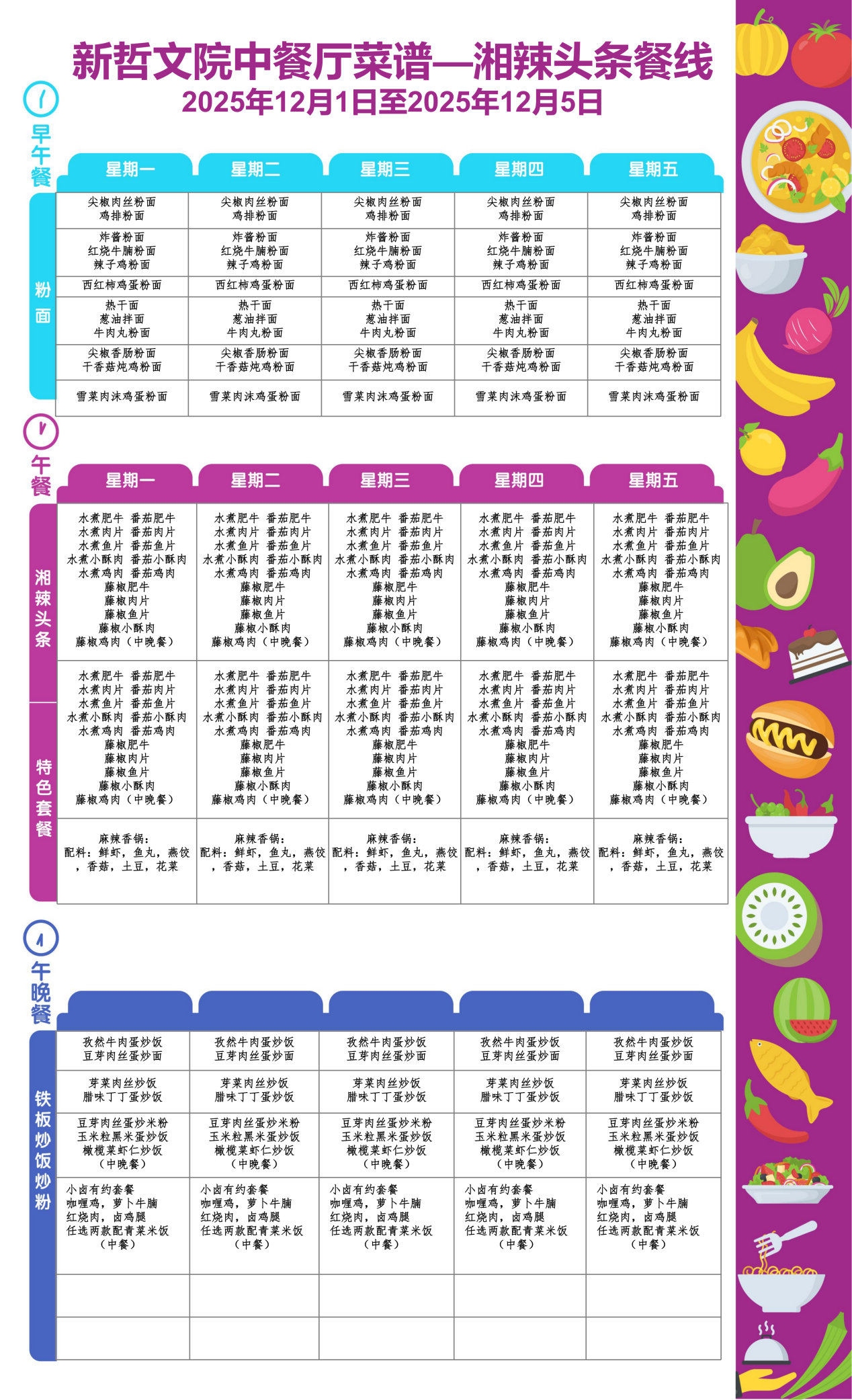 Weekly Menu | 新哲文院一周菜单(12.1-12.5)