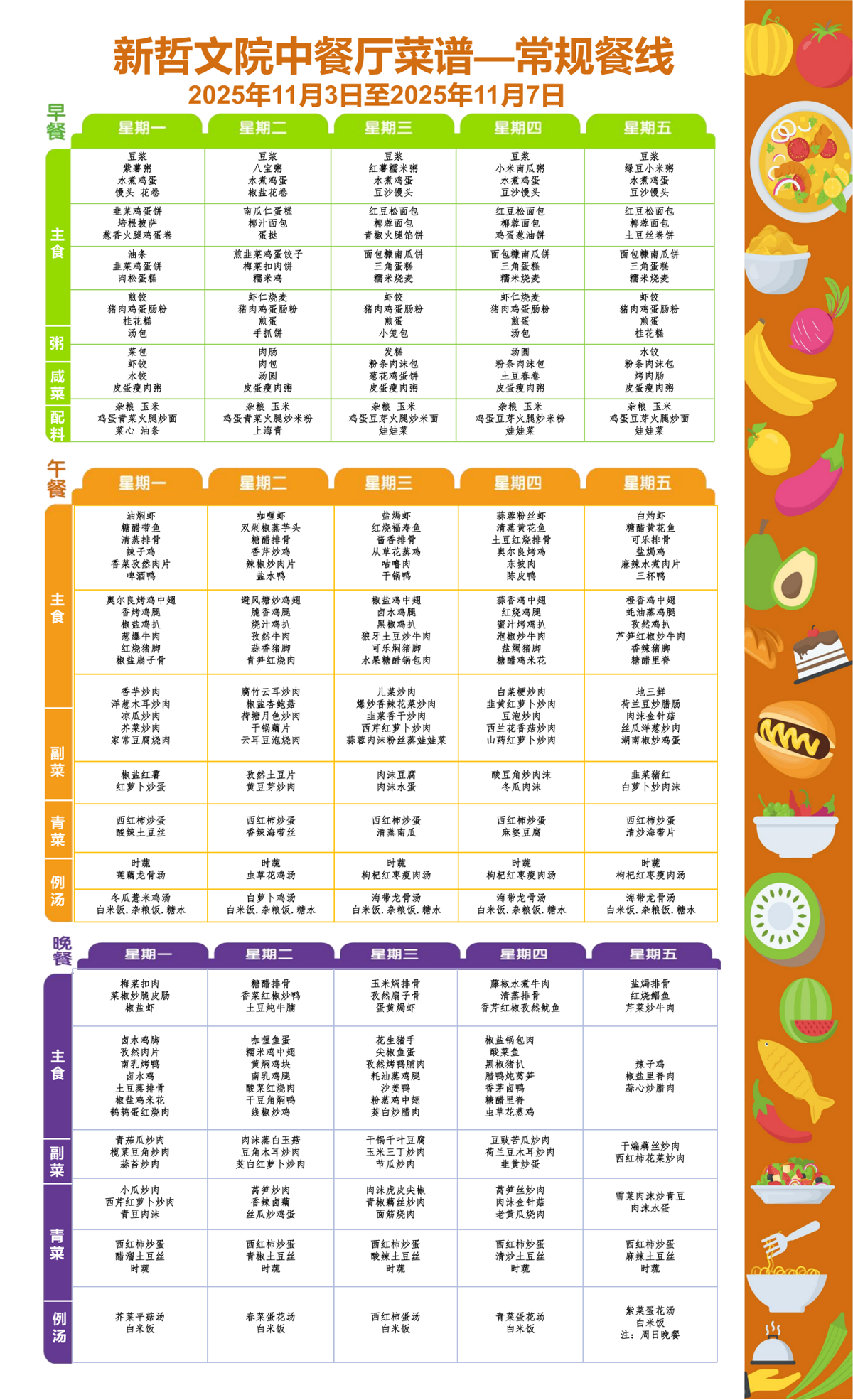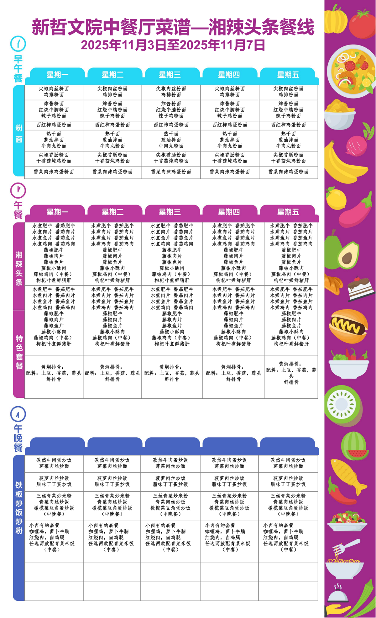 Weekly Menu | 新哲文院一周菜单(11.3-11.7)