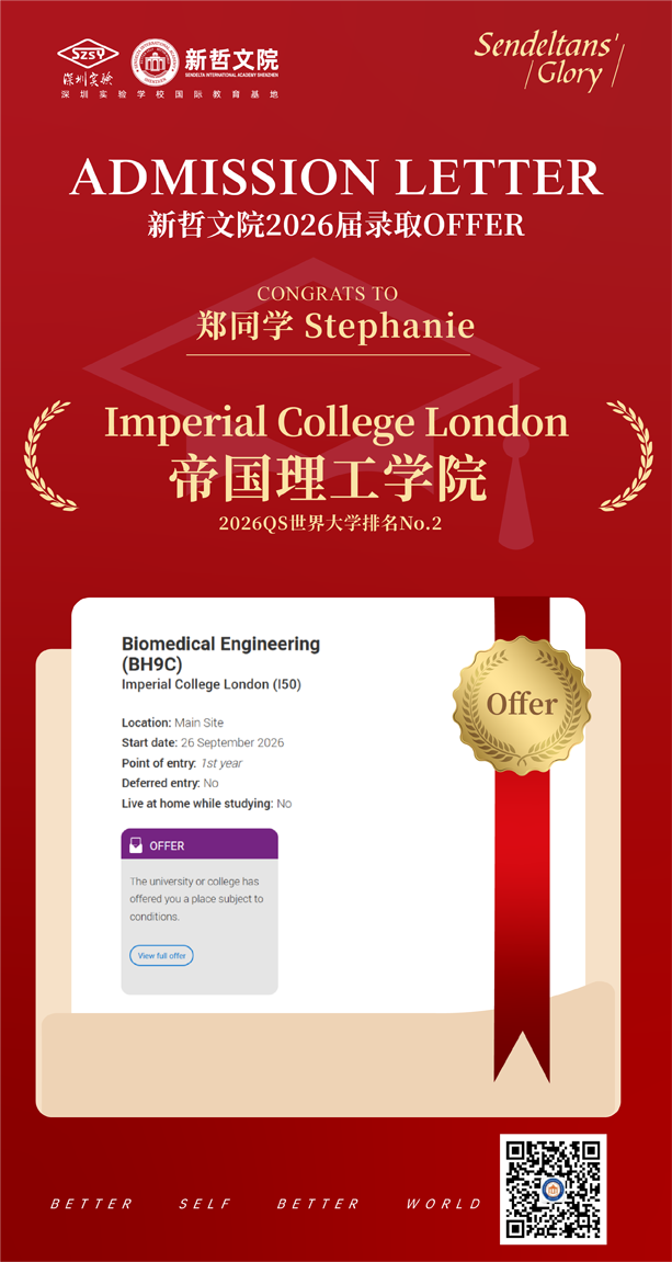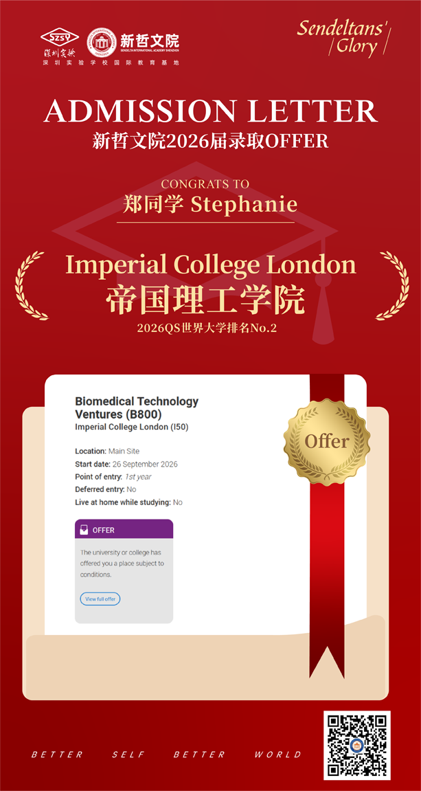 Blockbuster news: Two offers from Imperial College London are in! As the UK's No.1 and world's No.2 university, these two prestigious offers add brilliant stars to Sendelta's 2026 application season!